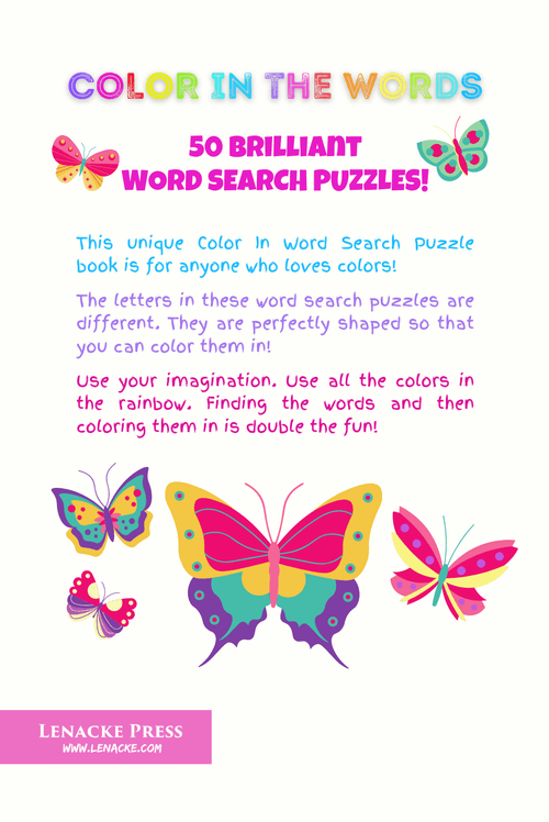 This beautiful COLOR IN WORD SEARCH PUZZLES book is all about Colors!