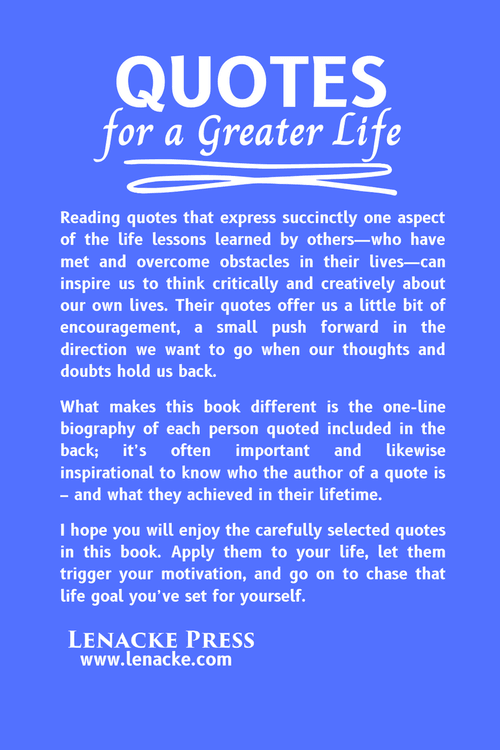 What makes this book different is the one-line biography of each person quoted included in the back! The quotes cover a wide range of themes that will inspire you, motivate you, and help you to take one step closer toward the life that you desire.